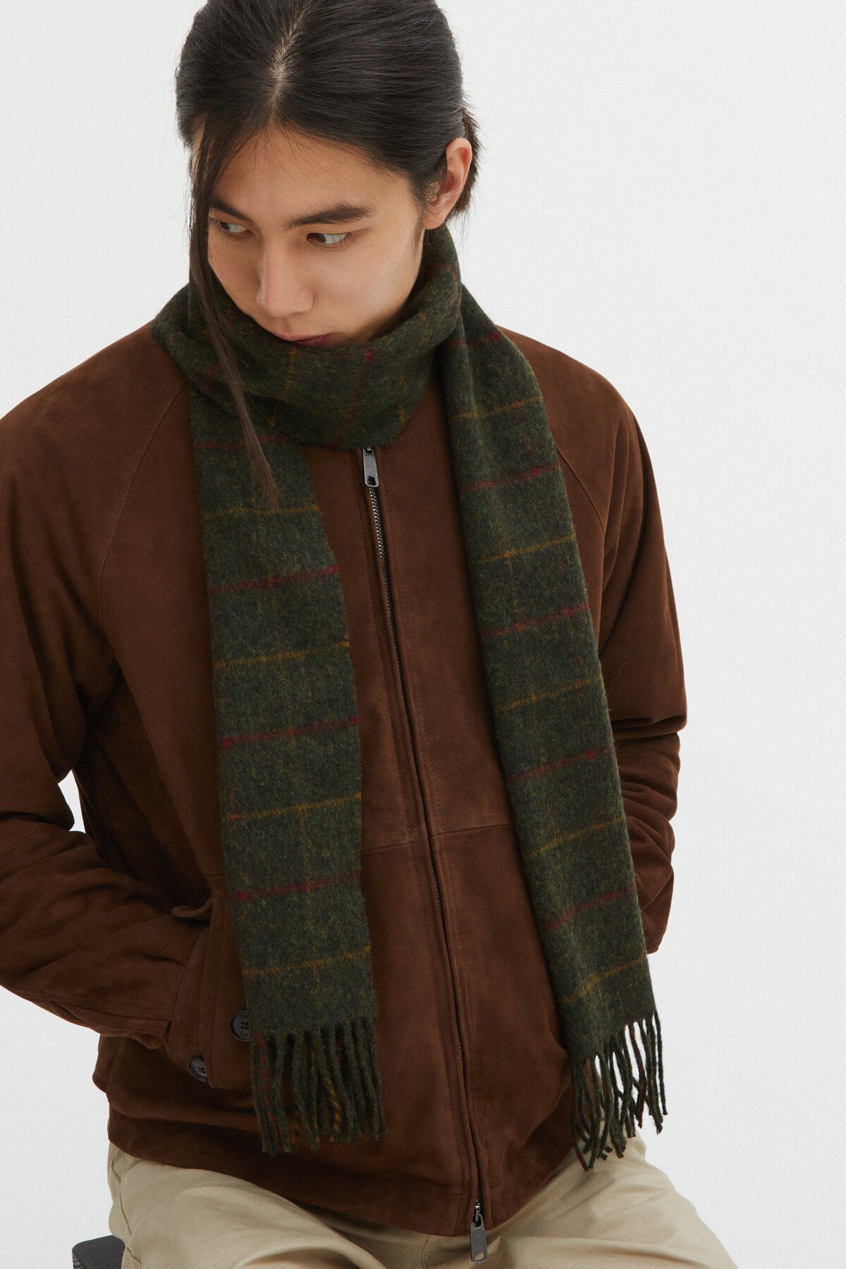 • Prepare yourself for one of the softest scarves you'll ever own. Our Wool Cashmere Scarf is produced in England in collaboration with Abraham Moon & Sons, who are renowned for their fine wool yarns since 1837. Featuring a classic windowpane pattern and finished with fringed ends. It will be the first thing you grab before heading out in the mornings and is sure to add some class to your winter looks. Pair it with our Terence Waxed Long Jacket for some extra protection.