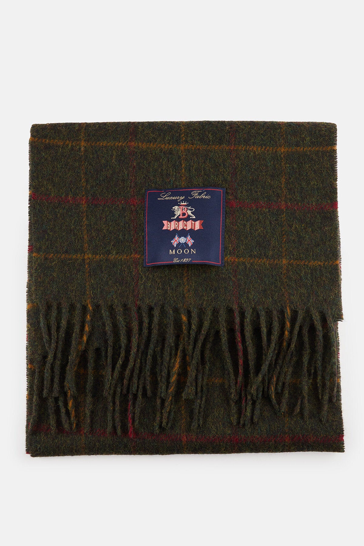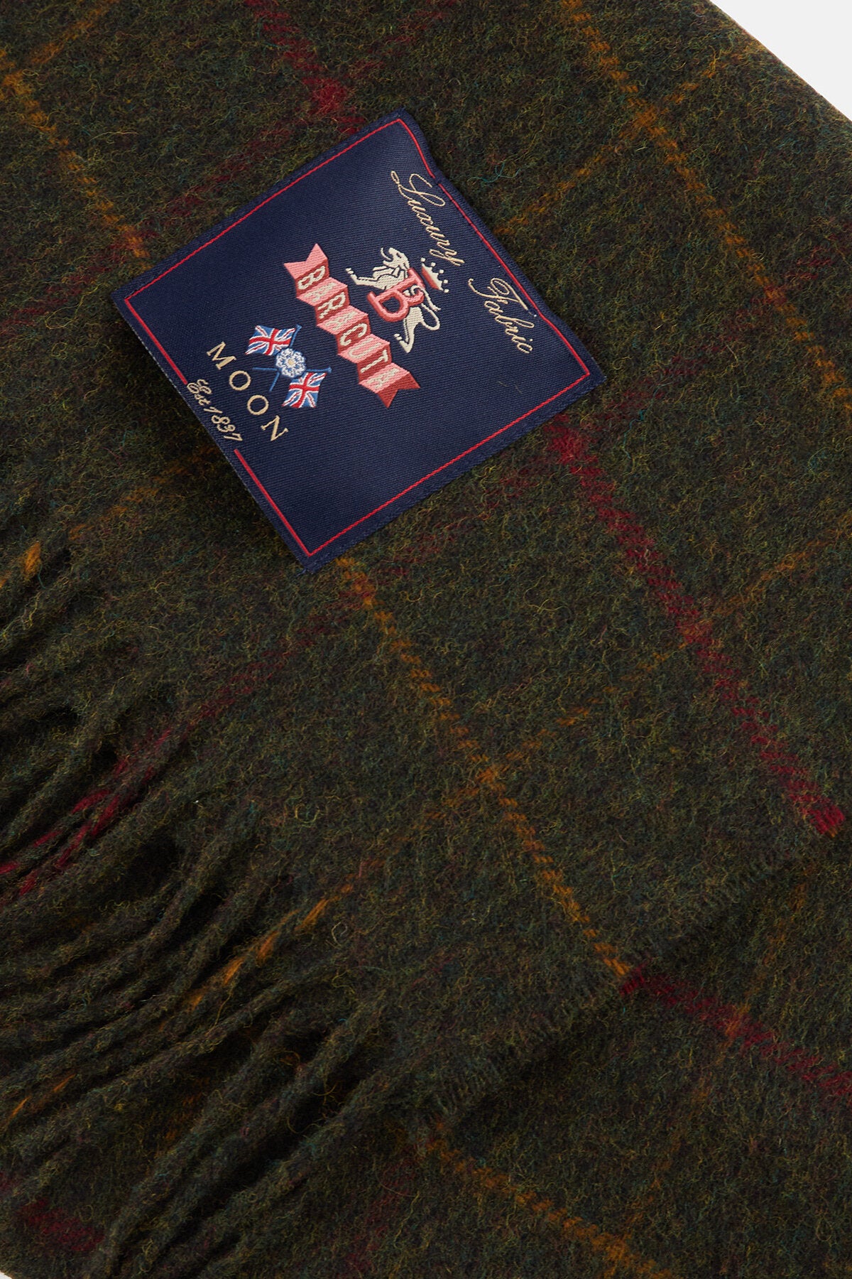 • • Baracuta x Abraham Moon & Sons label stitched onto the scarf