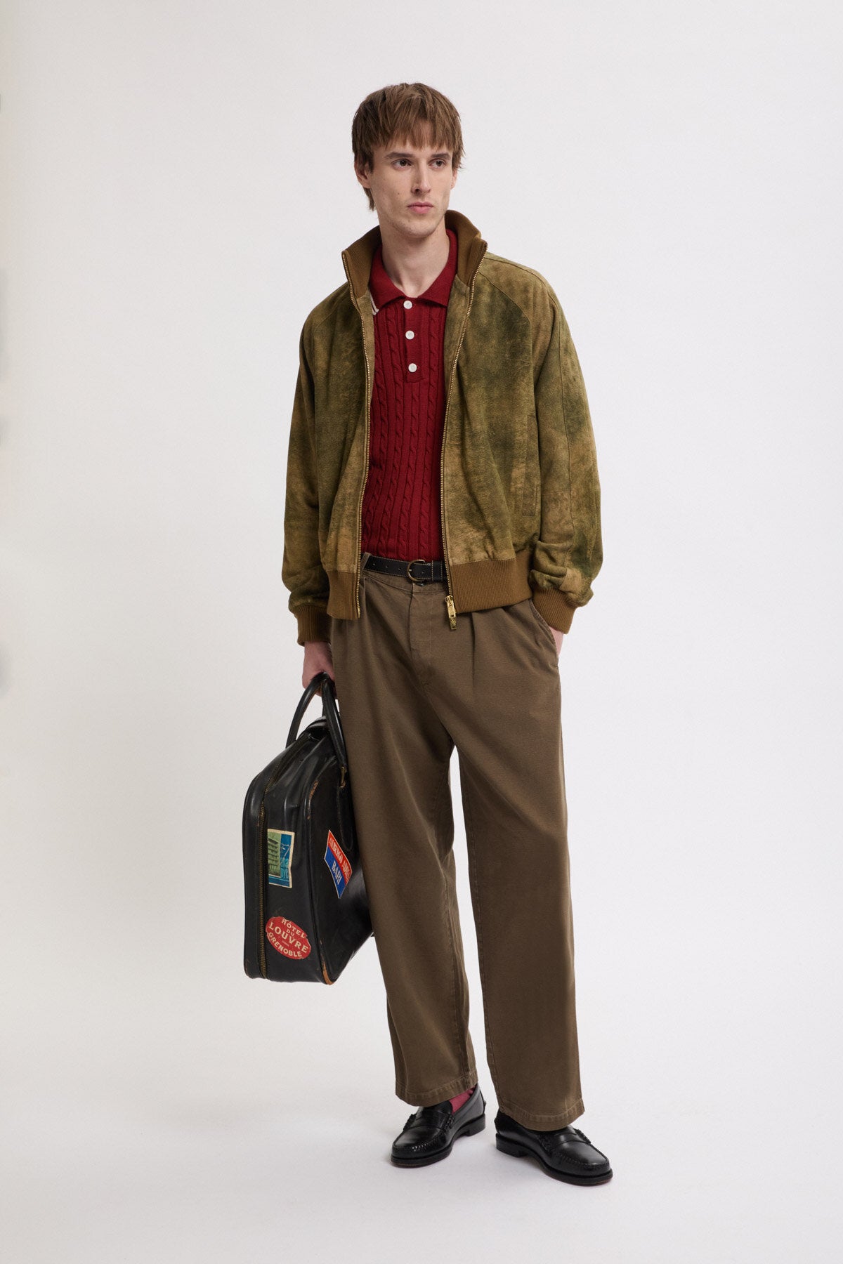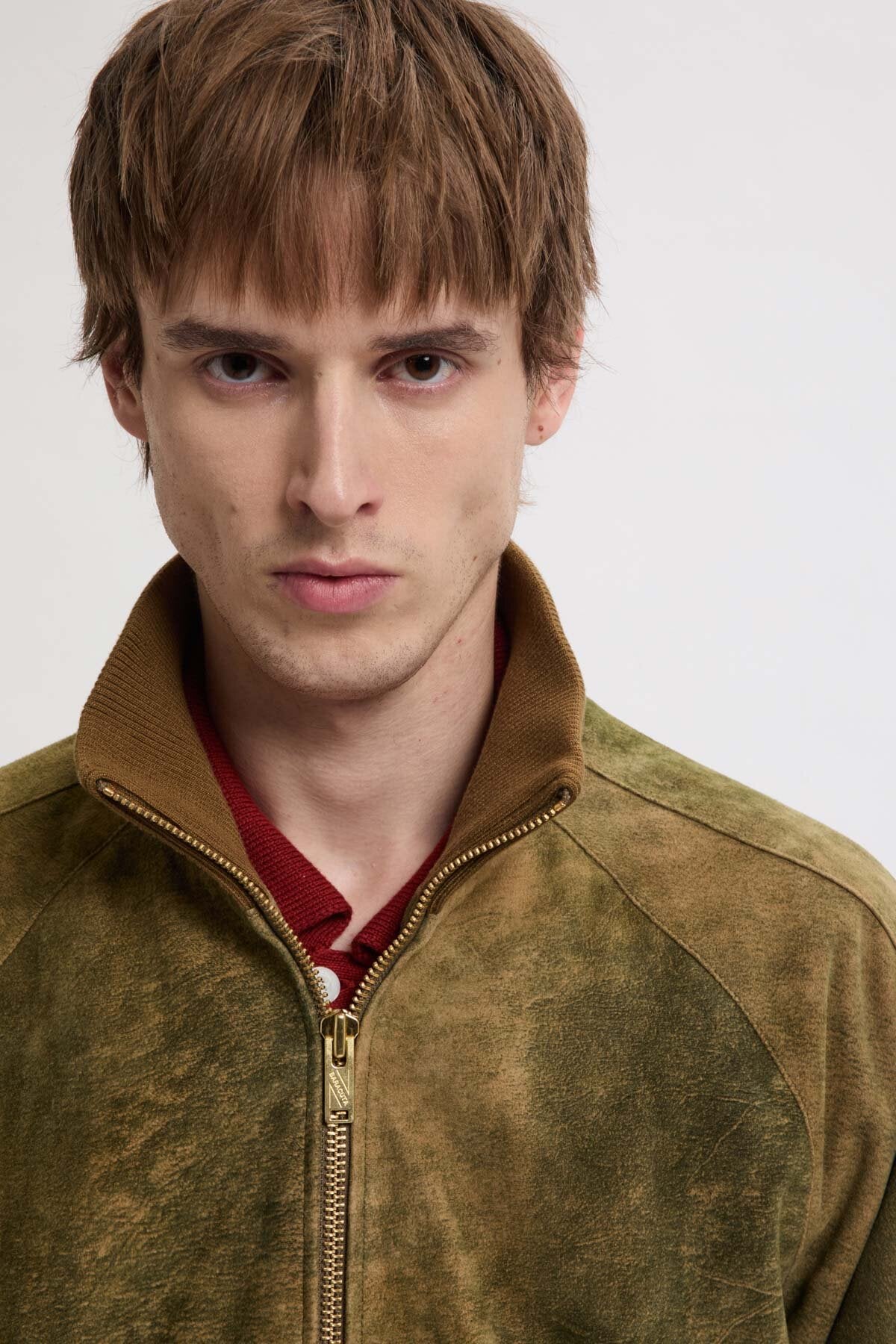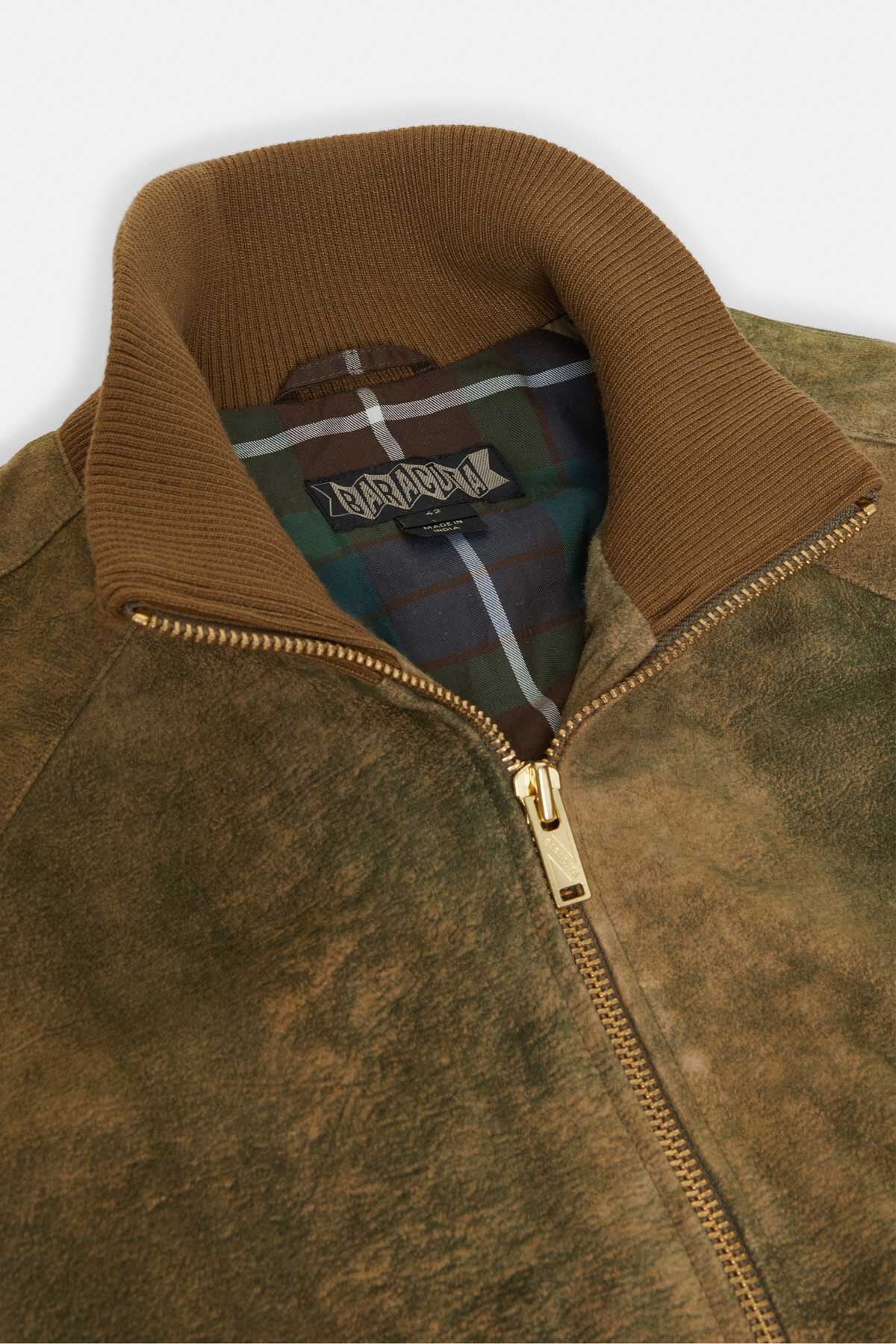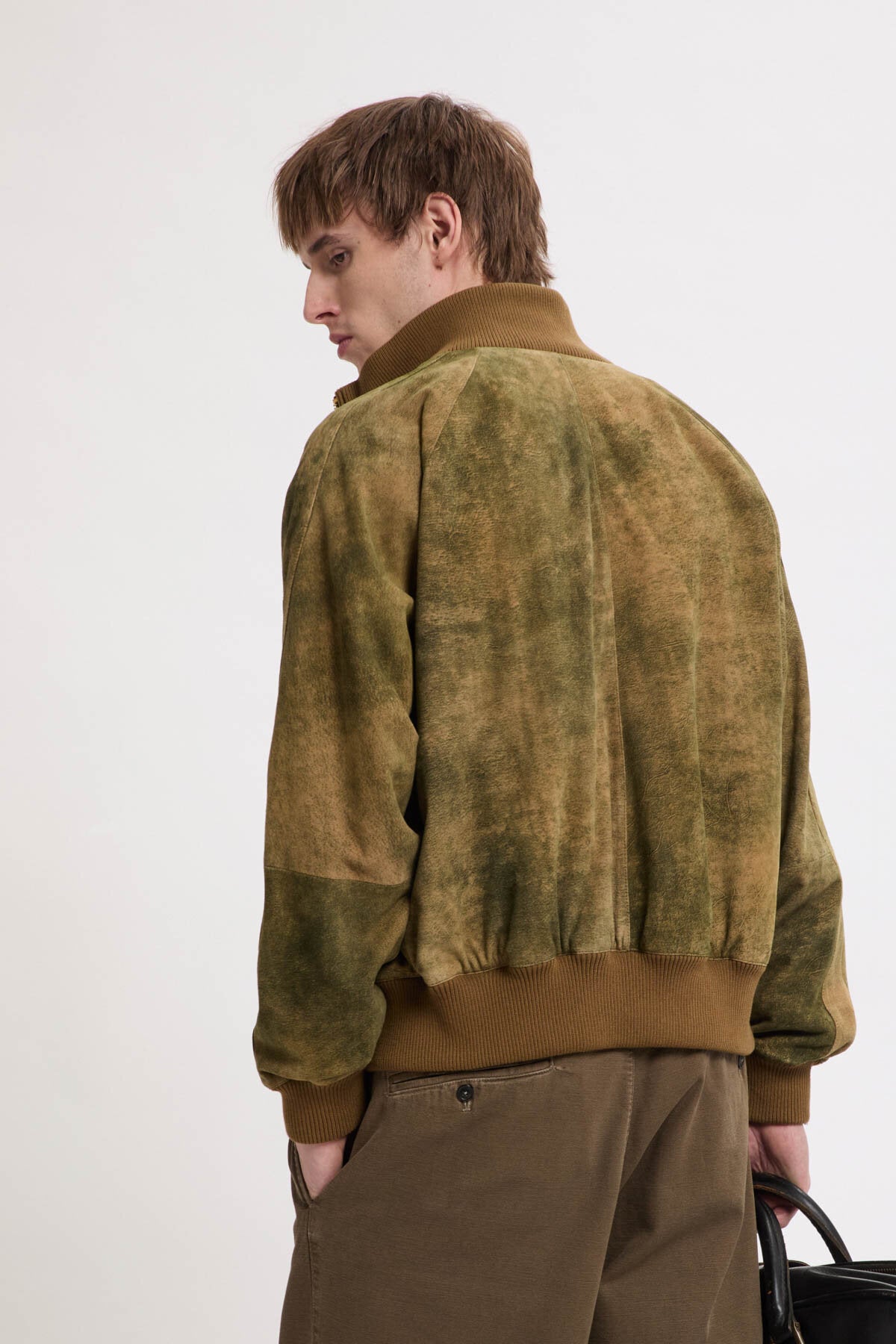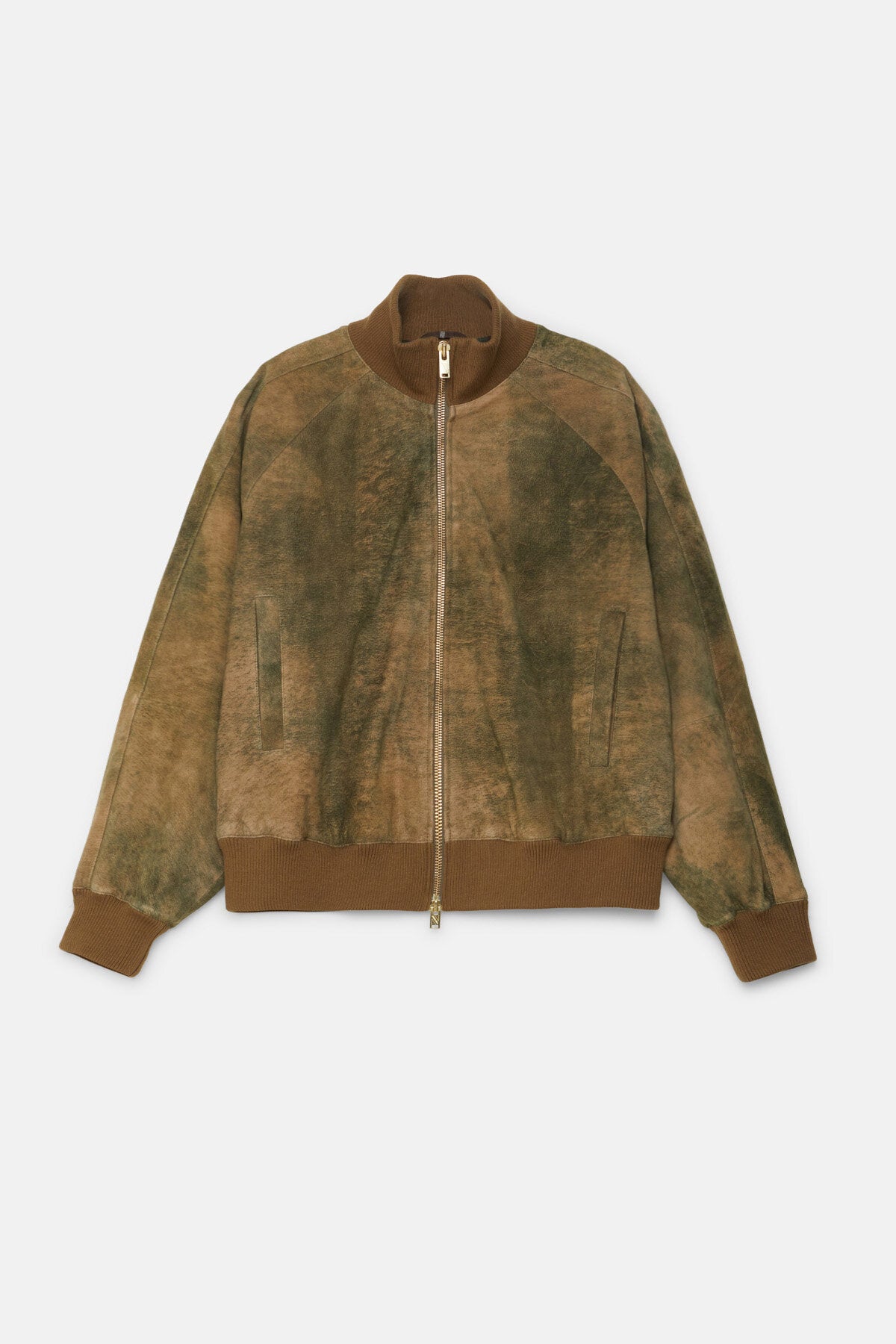 • Die Antique Suede Track Jacket wird aus 100 % sorgfältig ausgewähltem Veloursleder gefertigt und erhält durch eine spezielle Behandlung ein dezentes, vintage-inspiriertes Finish, das die natürliche Qualität des Leders zur Geltung bringt. Mit Raglanärmeln sowie einem elastischen, gerippten Kragen, Ärmelbündchen und Saum gestaltet, bietet das Modell optimale Bewegungsfreiheit und eine klare, maßgeschneiderte Silhouette. Jedes Detail ist bewusst durchdacht, um Funktionalität mit langlebiger Verarbeitung zu verbinden.