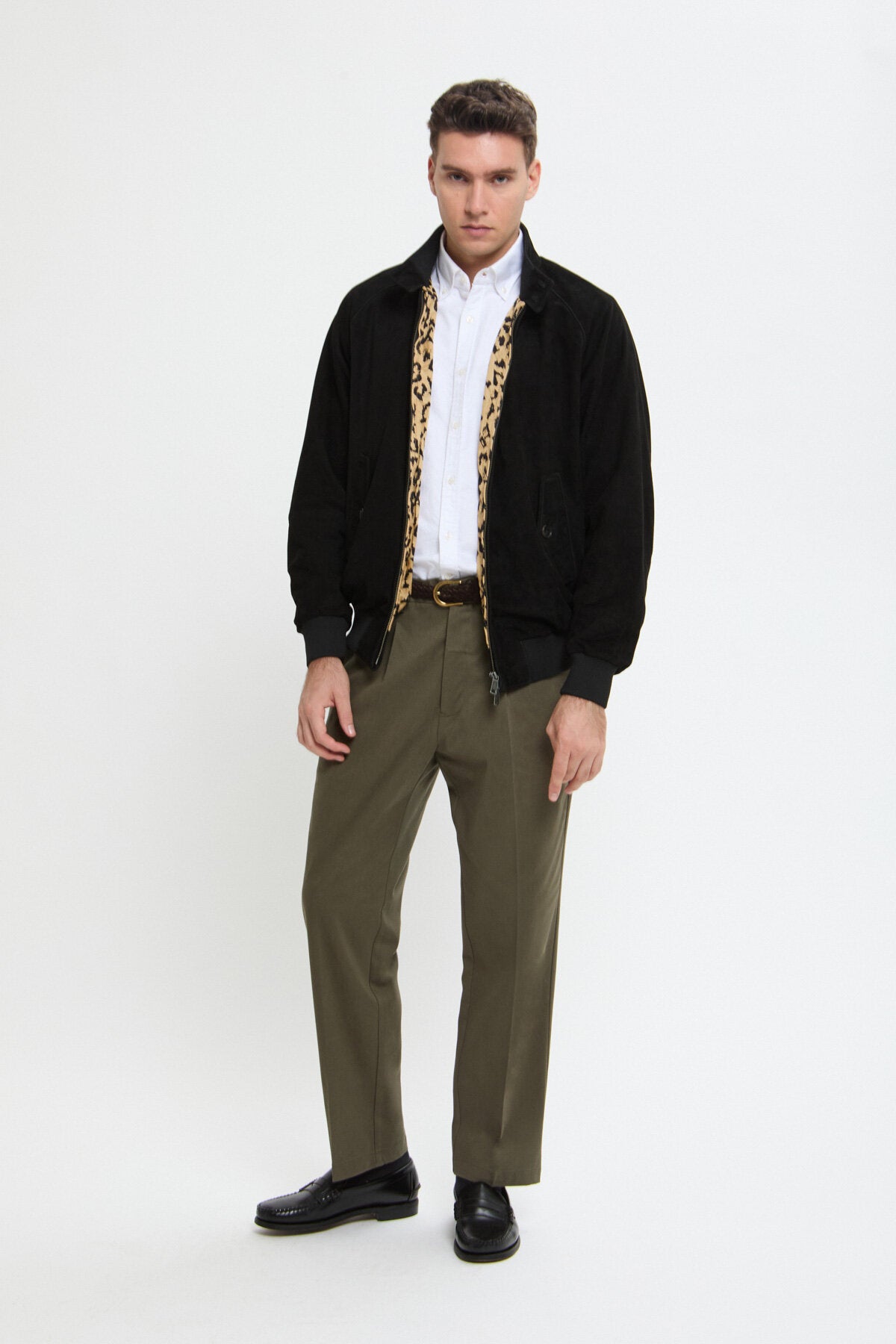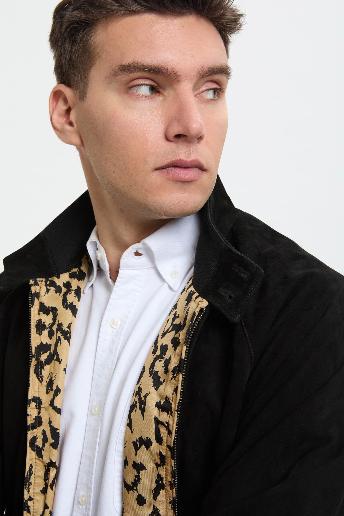 • Die G9 Suede x Wacko Maria kehrt in einer markanten Animalier-Edition zurück – in drei ausdrucksstarken Farbvarianten: Black, Tobacco und Chocolate. Das Außenmaterial besteht aus hochwertigem Baracuta-Wildleder, während das unverwechselbare Leopardenfutter im Inneren unverkennbar die Attitüde von Wacko Maria versprüht – abgerundet durch ein dezentes Detail in Form einer Metallkette. Sowohl das Design als auch die Passform wurden aktualisiert und bieten einen lockereren Schnitt für einen weicheren Unisex-Look.
