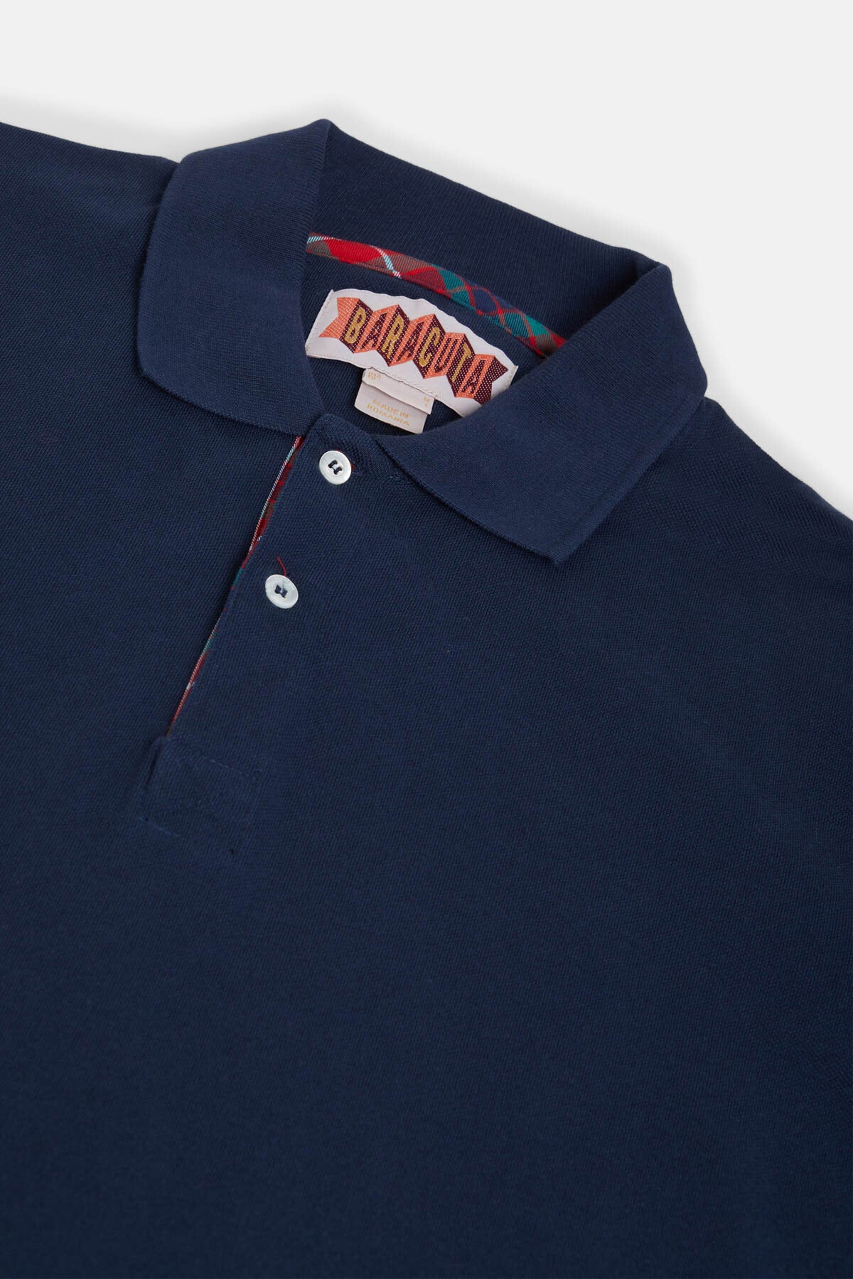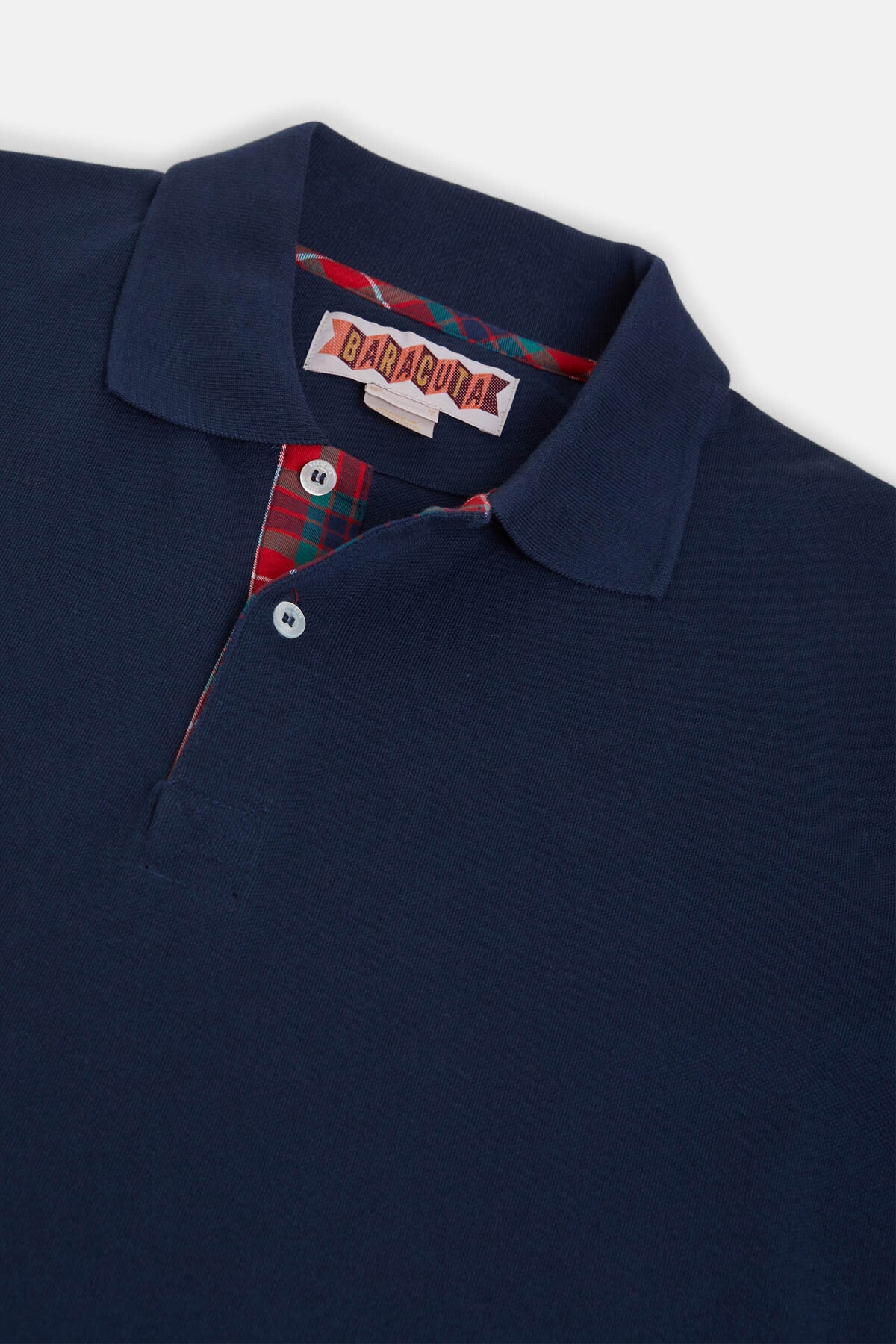• Das Tartan Placket Polo ist aus 100% Baumwolle gefertigt. Ein dezentes Fraser‑Tartan‑Detail entlang der Knopfleiste verleiht dem Modell einen Hauch von Baracutas Heritage.