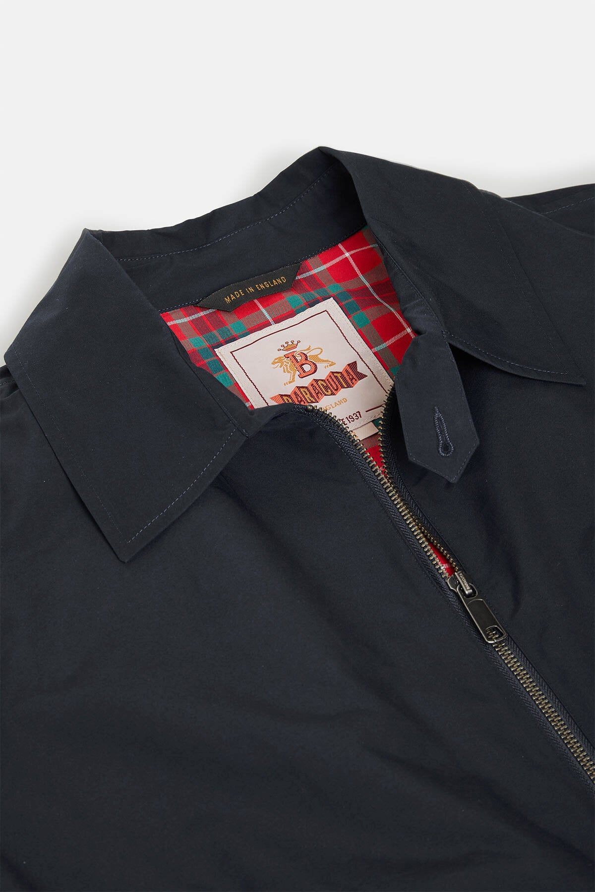 • La veste G18 de Baracuta réinvente un classique de la fin des années 1960 avec un côté moderne et soigné, confectionné à partir de l’emblématique toile Baracuta Cloth, fièrement fabriquée au Royaume-Uni. Sa silhouette décontractée accompagne vos mouvements grâce à deux plis d'action, tandis que la sangle de col à un bouton, la fermeture à glissière bi-directionnelle avec logo et les poches inspirées des blousons des années 1970 ajoutent une touche distinctive mais adaptée à l'époque, la rendant pratique sans fioritures. Entièrement doublée en Fraser Tartan, la veste G18 est prête à affronter la vie en ville ou à la campagne. Plus qu'une renaissance, il s'agit d'une déclaration de style délibérée. Chaque détail reflète un dialogue entre l'héritage et la modernité, la fonctionnalité et la mode, ce qui témoigne de la pertinence culturelle durable de Baracuta.