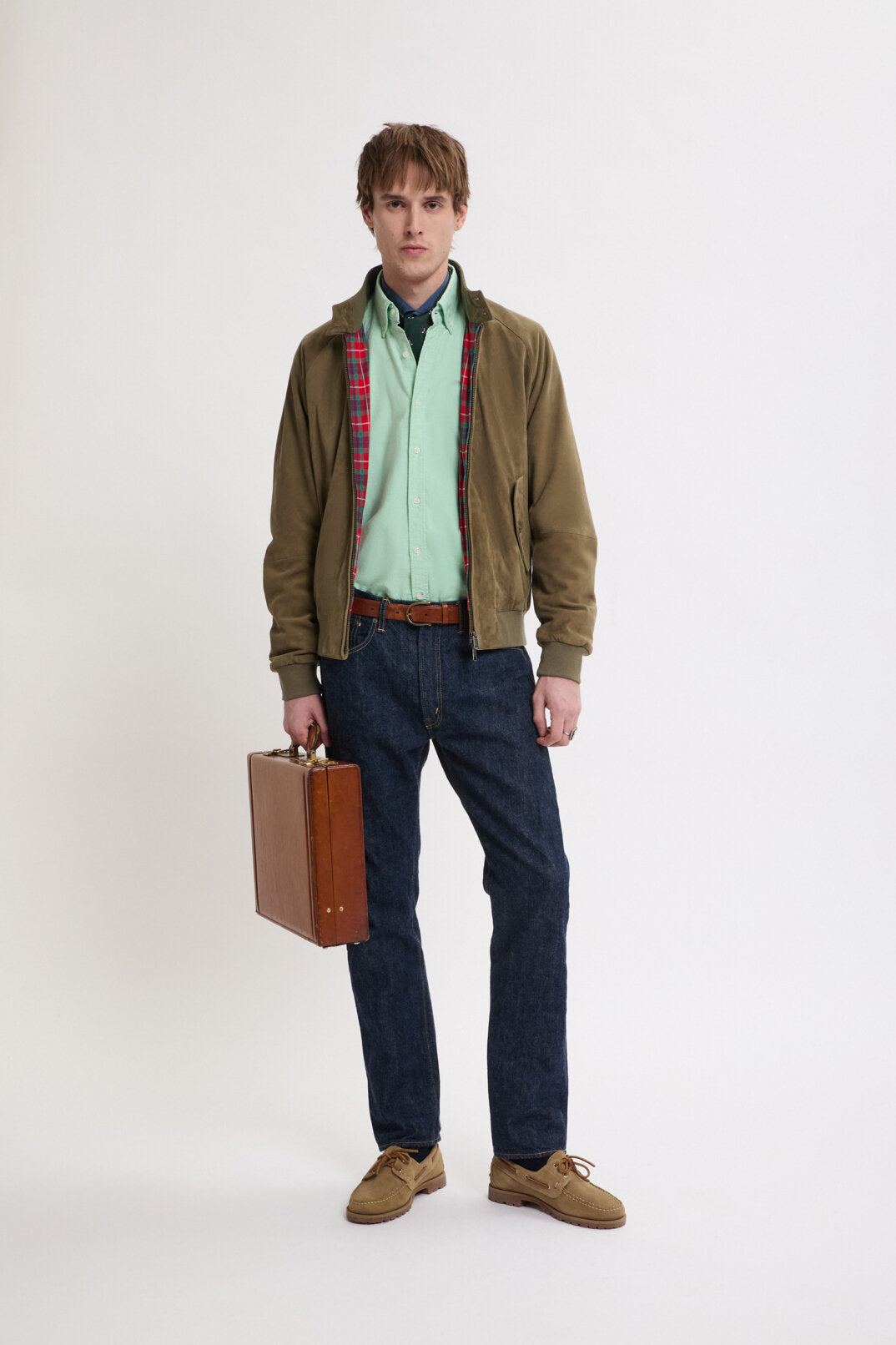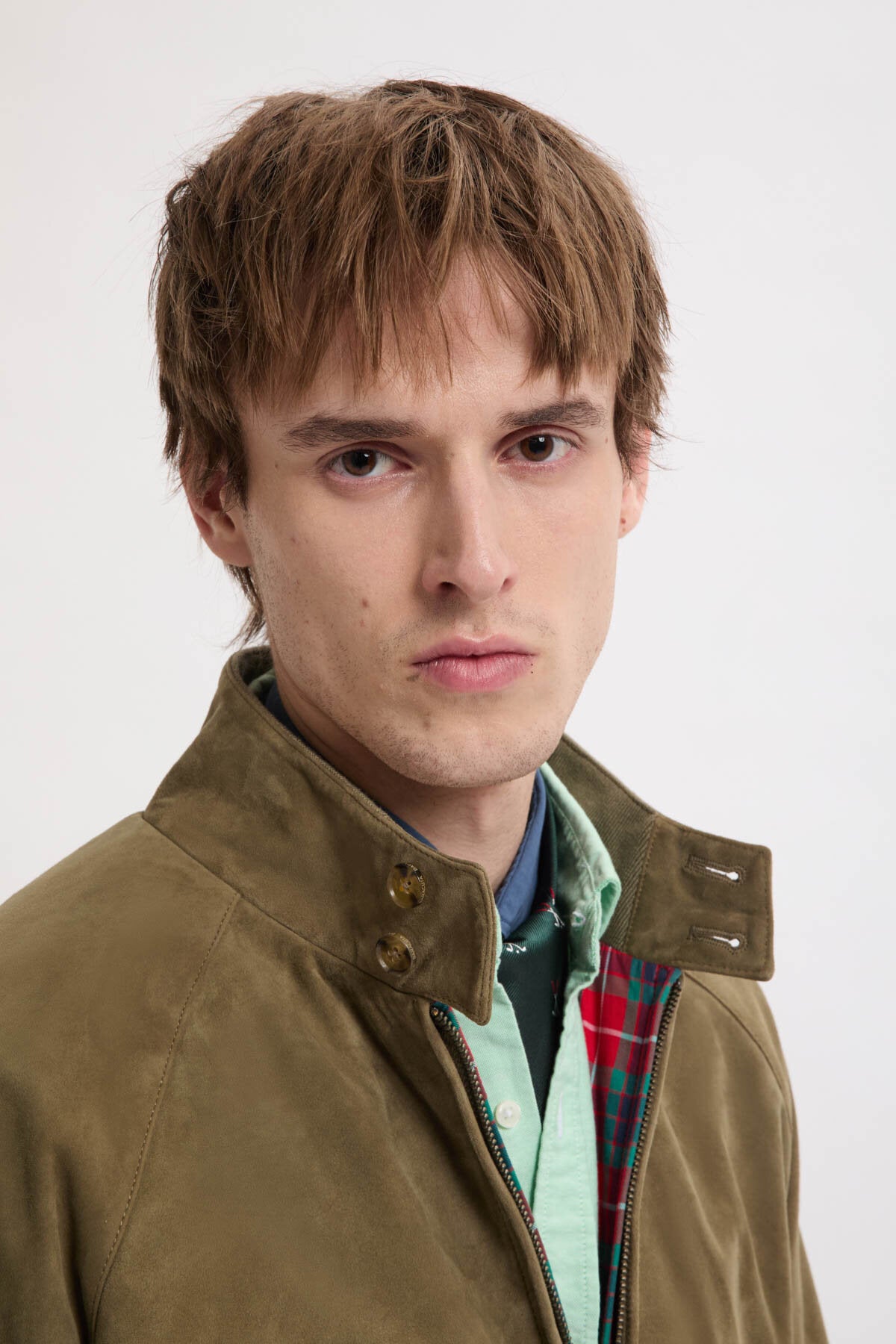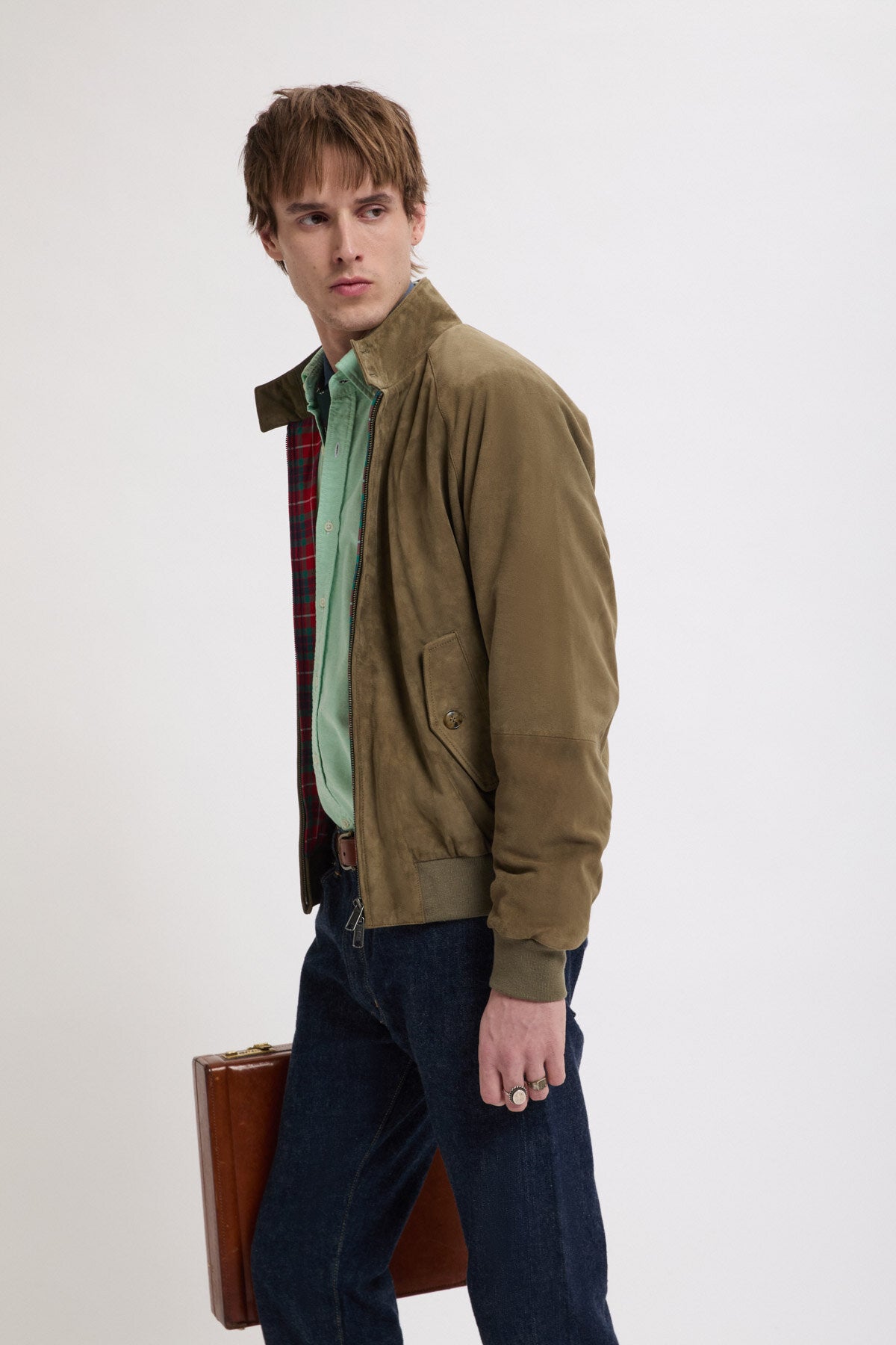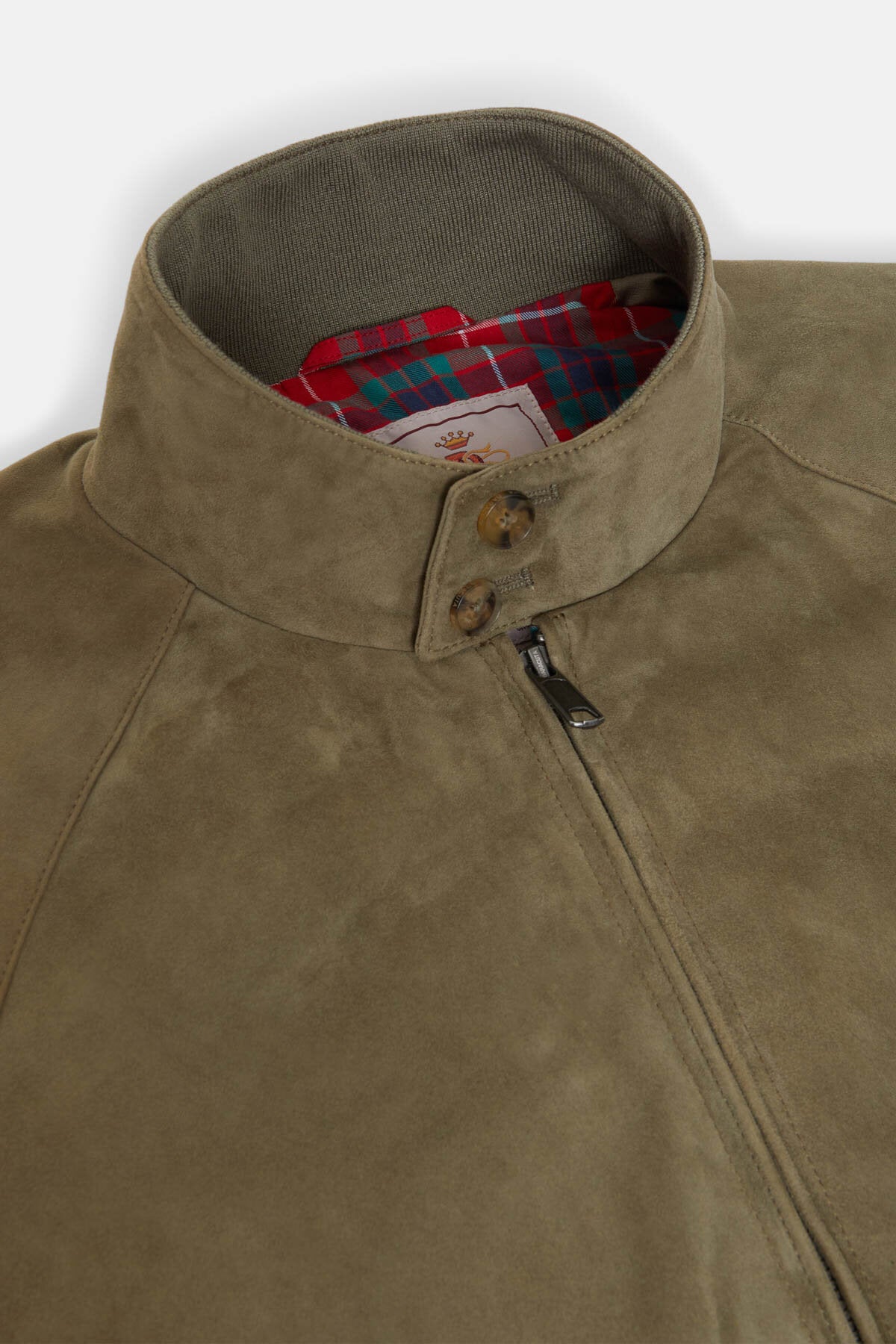 • Impossible de se tromper avec une veste en daim. La G9 en daim décline la veste Harrington classique en daim haut de gamme. En raison de sa grande polyvalence, ce modèle s’est tout de suite fait un nom et est devenu extrêmement populaire au fil des années jusqu’à s’imposer comme une véritable icône de style. La G9 en daim est dotée de notre doublure Fraser Tartan en tissu Coolmax® respirant, d’un col montant boutonné à deux boutons, de poches latérales en biais, de l’empiècement dos en forme de parapluie caractéristique de Baracuta ainsi que de poignets, d’une taille et d’un col intérieur côtelés.