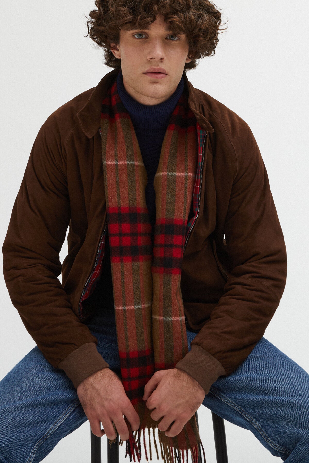• N’oubliez pas de bien vous couvrir cet hiver avec notre écharpe en laine à carreaux. Elle est confectionnée en pure laine mérinos en Angleterre en collaboration avec Abraham Moon & Sons, une maison réputée pour la qualité de ses fils depuis 1837. Se distinguant par ses extrémités frangées, elle se décline dans différentes couleurs et motifs. Must-have des mois les plus glaciaux, c’est l’accessoire idéal pour ajouter une touche de style à vos looks d’hiver. Portez-la avec notre G9 Thermal pour un confort absolu lorsque vous sortez en famille ou avec vos amis.