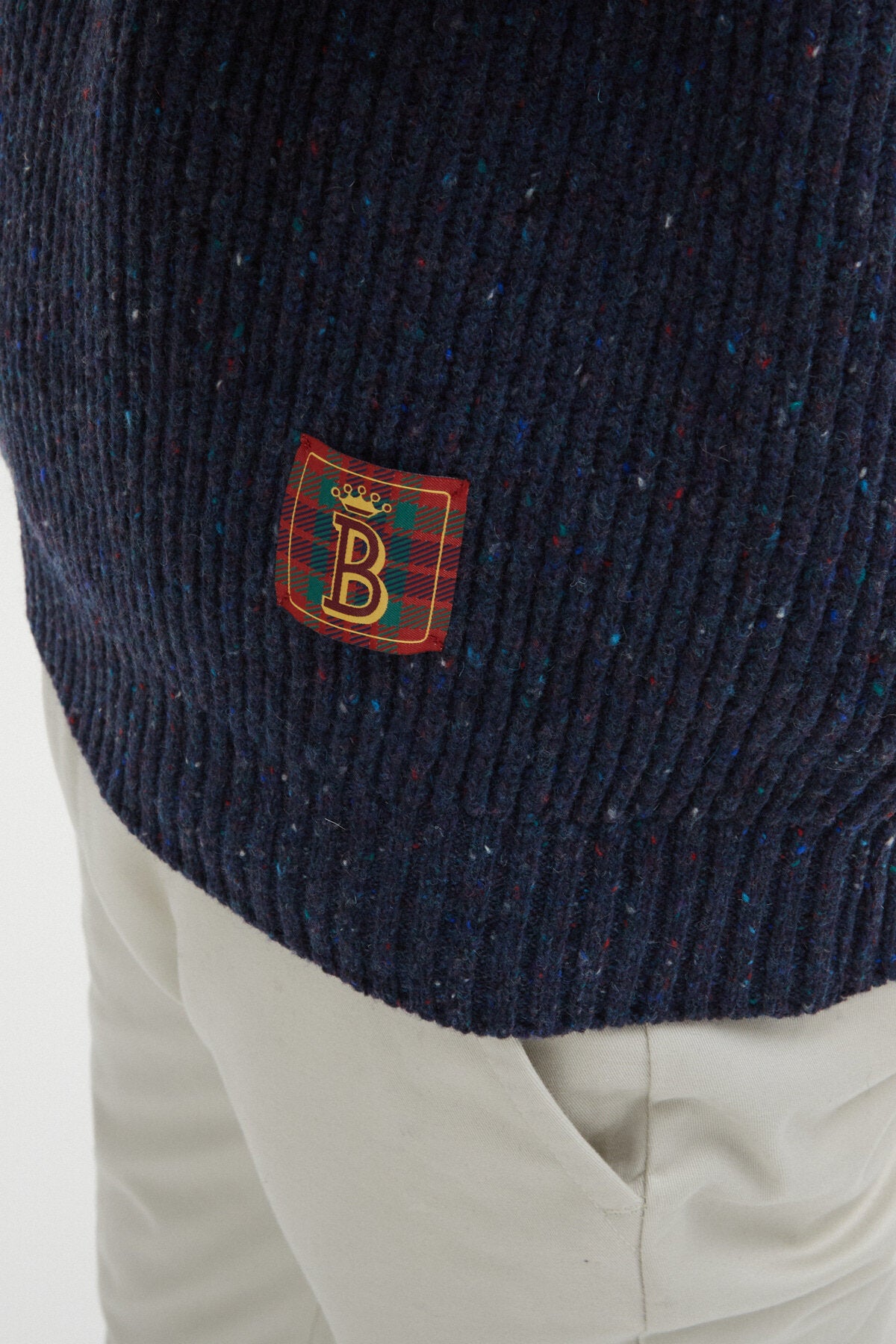 • • Etichetta Jacquard con base Fraser Tartan e "B" di Baracuta