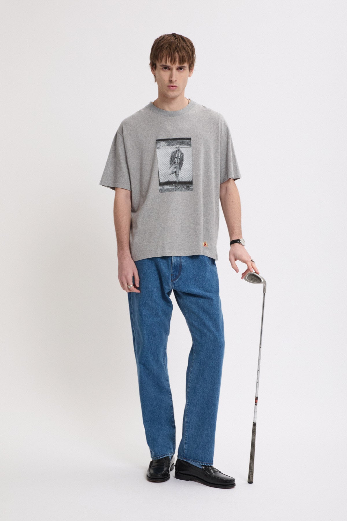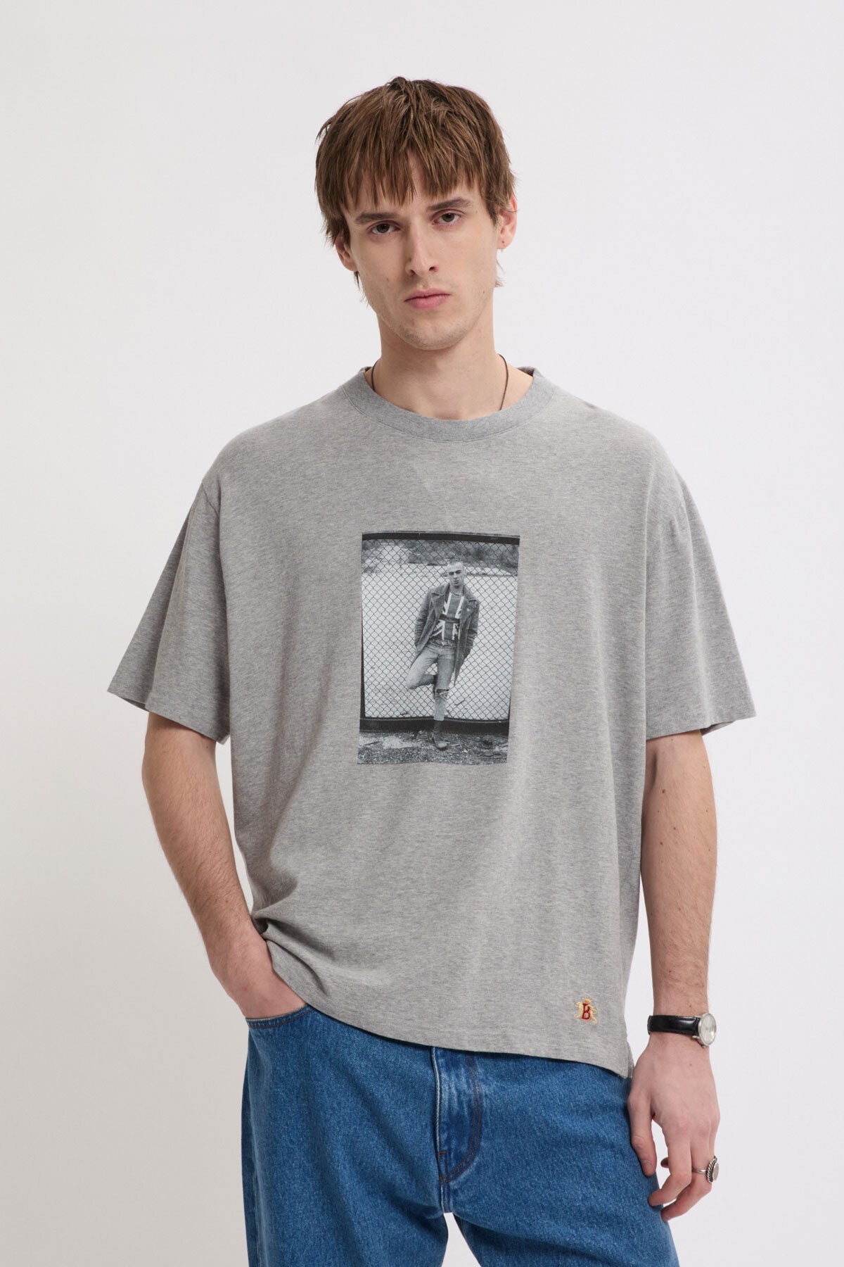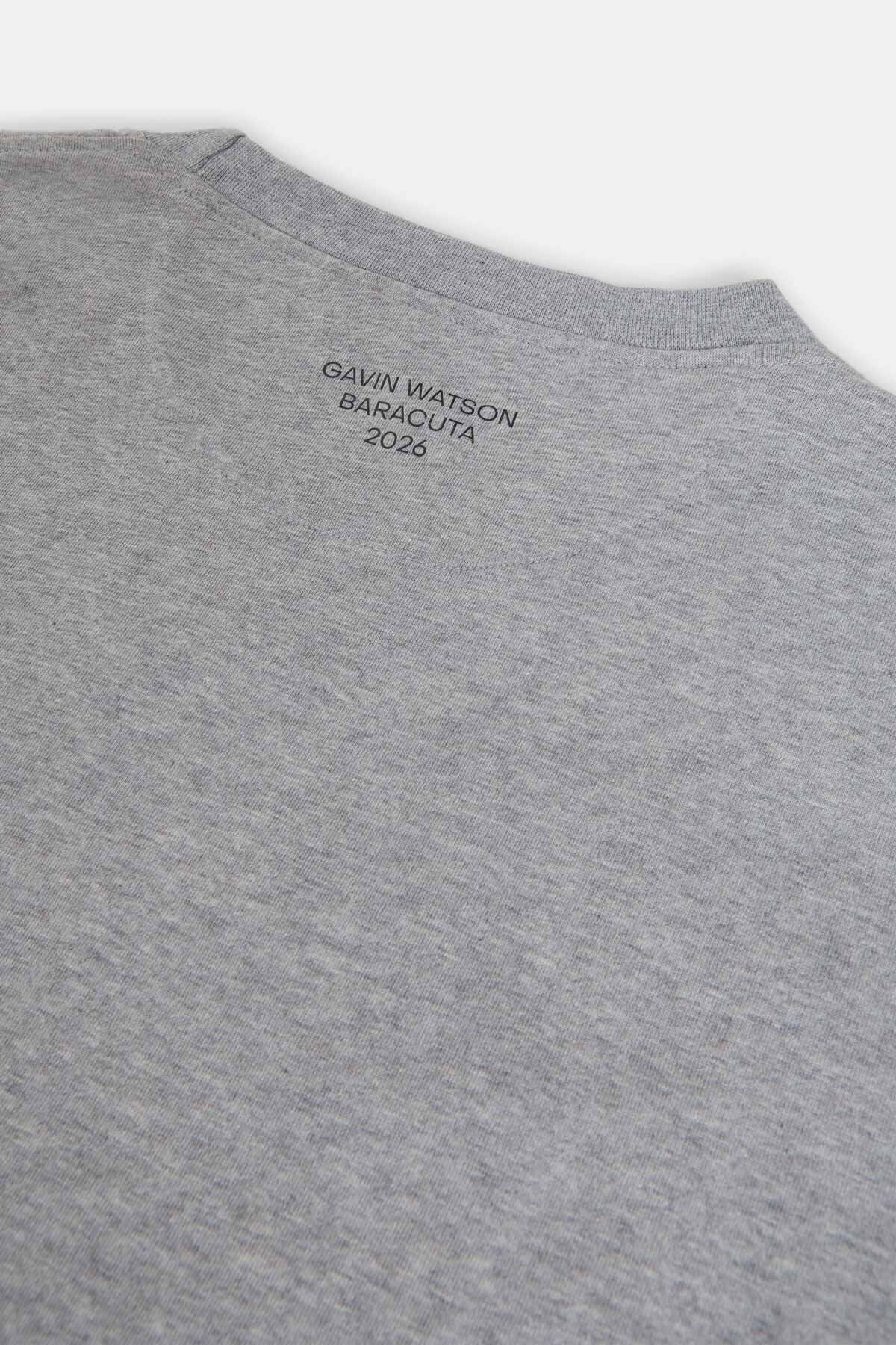 La T-shirt girocollo Gavin Watson 1 in 100% cotone presenta un’istantanea del fotografo stampata in versione maxi sul petto, affiancata dal logo Baracuta. Sulla parte posteriore compare la scritta “GAVIN WATSON BARACUTA SS26”, simbolo della collaborazione.