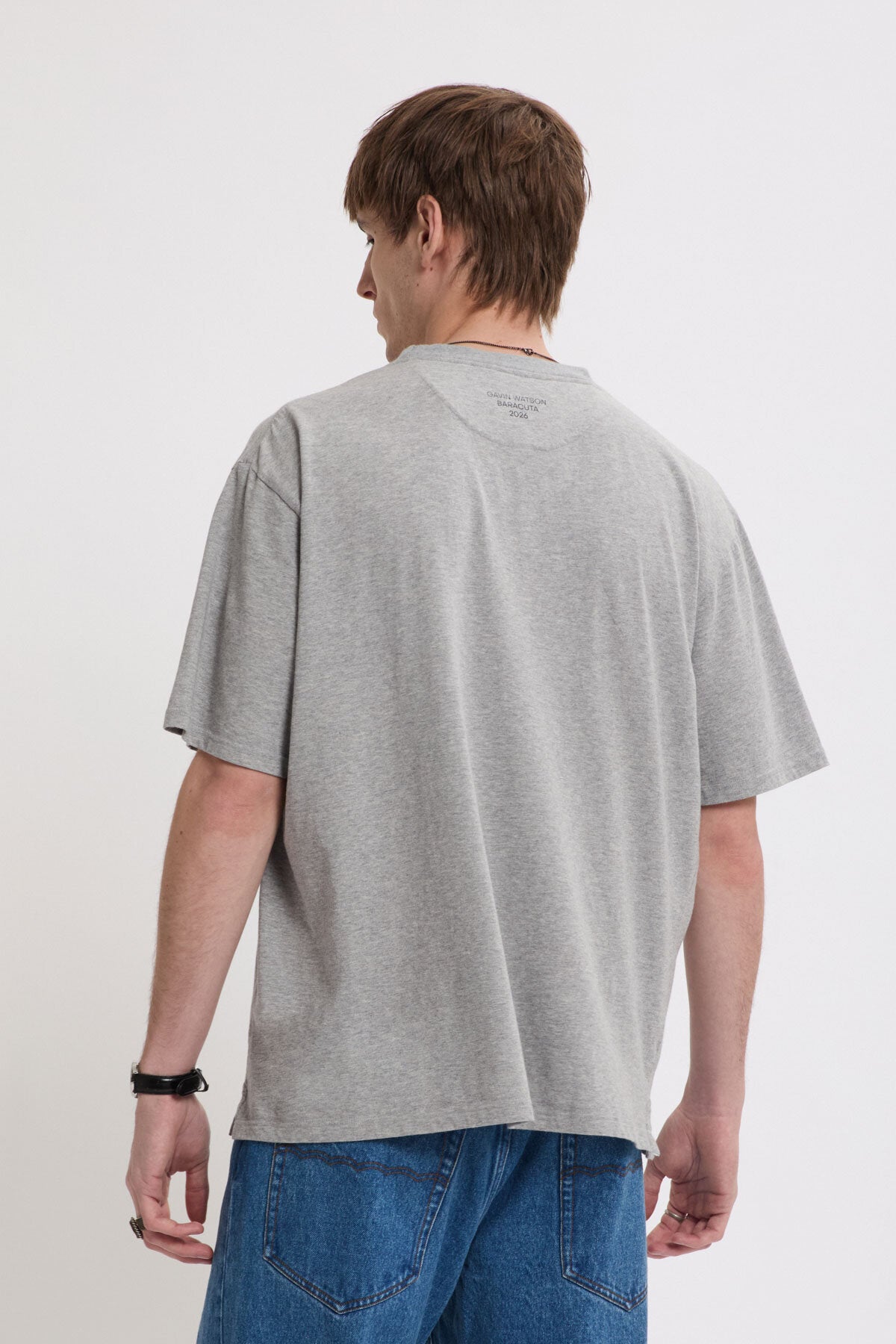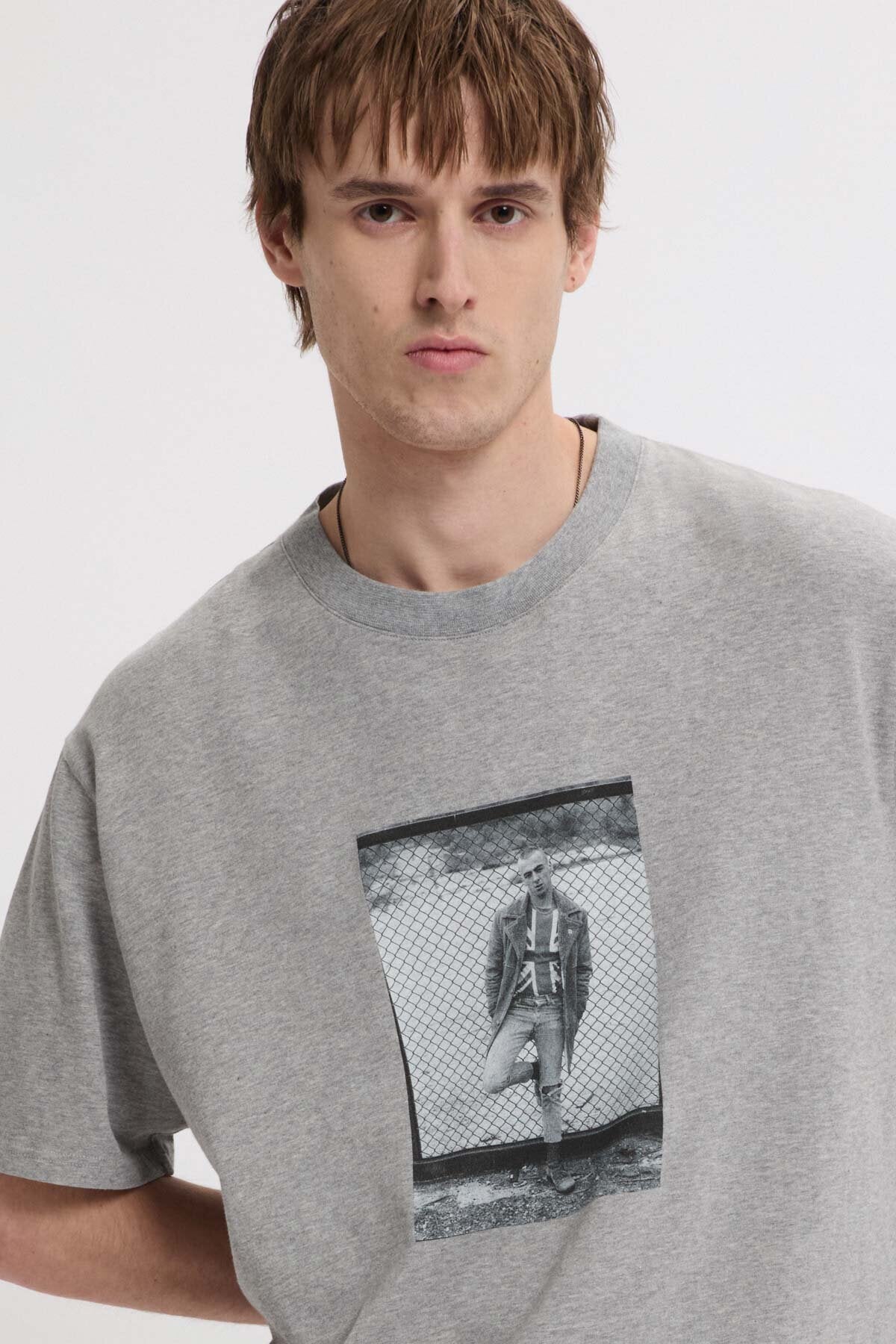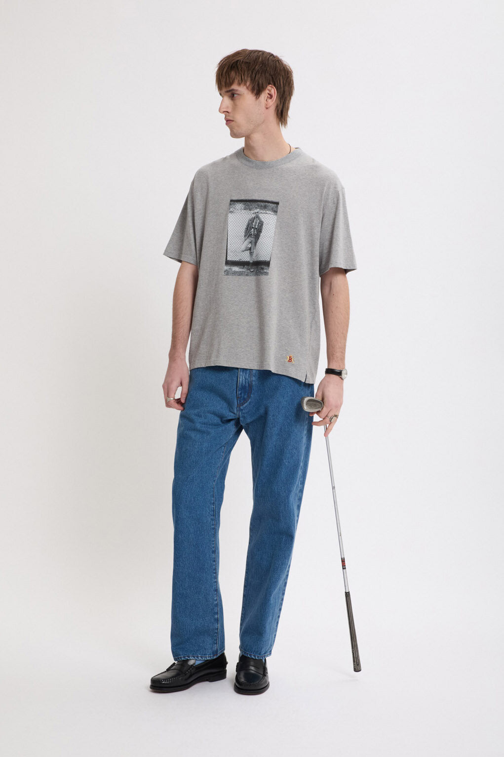 La T-shirt girocollo Gavin Watson 1 in 100% cotone presenta un’istantanea del fotografo stampata in versione maxi sul petto, affiancata dal logo Baracuta. Sulla parte posteriore compare la scritta “GAVIN WATSON BARACUTA SS26”, simbolo della collaborazione.