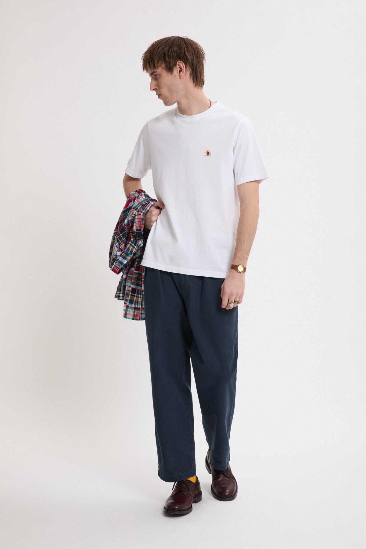 • Sotto al G9 non può mai mancare una T-shirt. Realizzata in 100% cotone, questa T-shirt girocollo è morbida, traspirante e progettata per durare nel tempo. Il logo Baracuta ricamato sul petto conferisce al capo un vero tocco distintivo, rendendolo perfetto da indossare tutti i giorni.