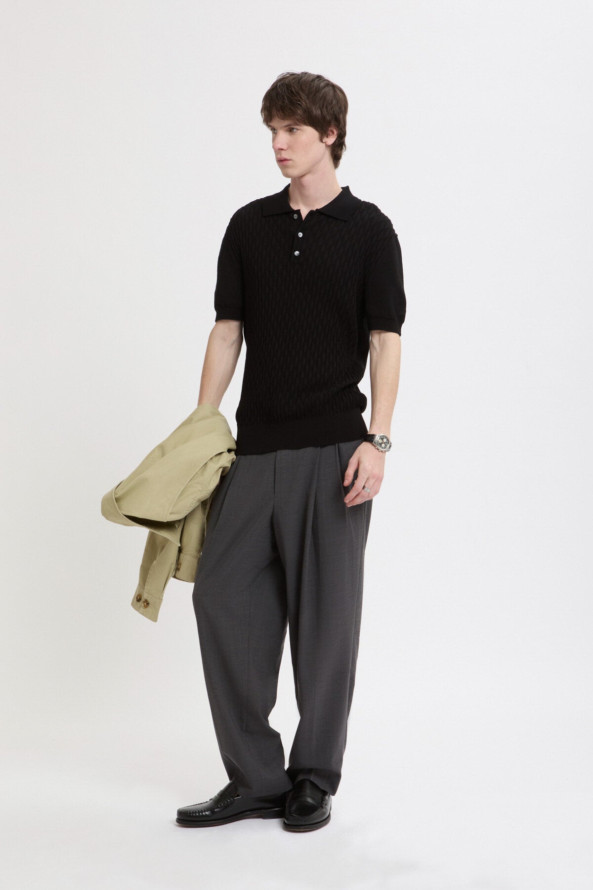 La polo a maniche corte Pattern Stitch è realizzata al 100% in un cotone selezionato appositamente per la sua durevolezza. Questo materiale offre una traspirabilità e una resilienza naturali che rendono il capo ideale per l’uso quotidiano. Ciò che contraddistingue questa polo è la cucitura a diamante sul davanti, un motivo ottenuto attraverso un’accurata lavorazione a maglia.