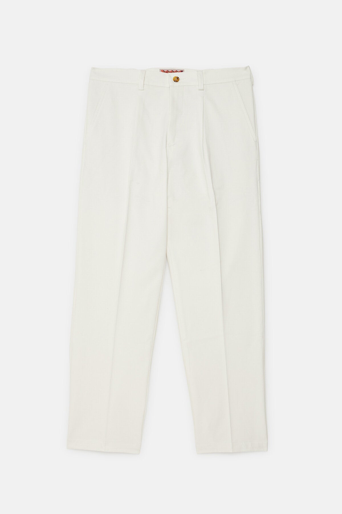 Crafted from 100% cotton, the fabric feels soft yet structured, giving the trousers a naturally easy drape and effortless charm. The seamless pockets and subtle tone-on-tone Baracuta logo on the back complete the design with a clean, classic finish, making them a versatile staple for any wardrobe.