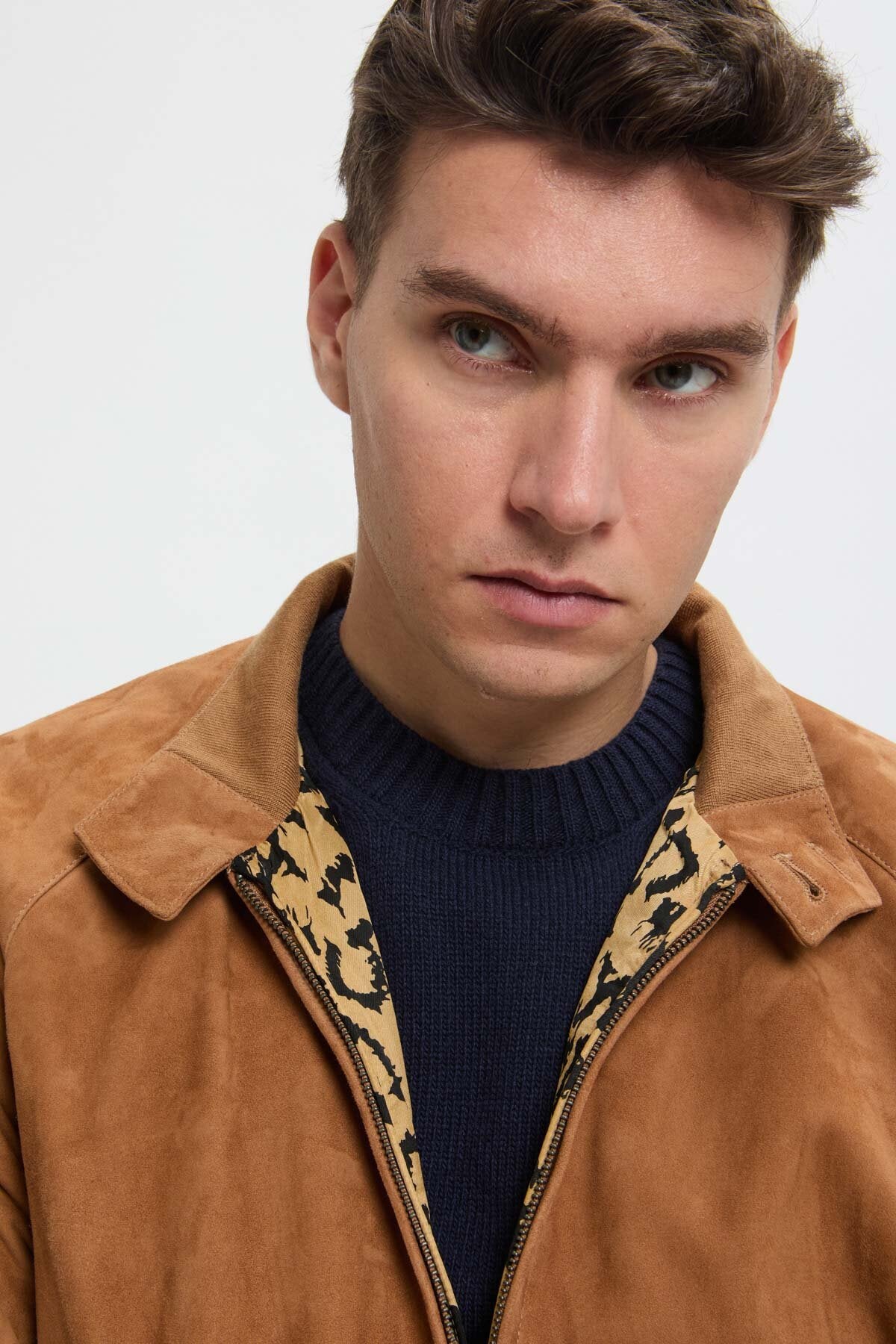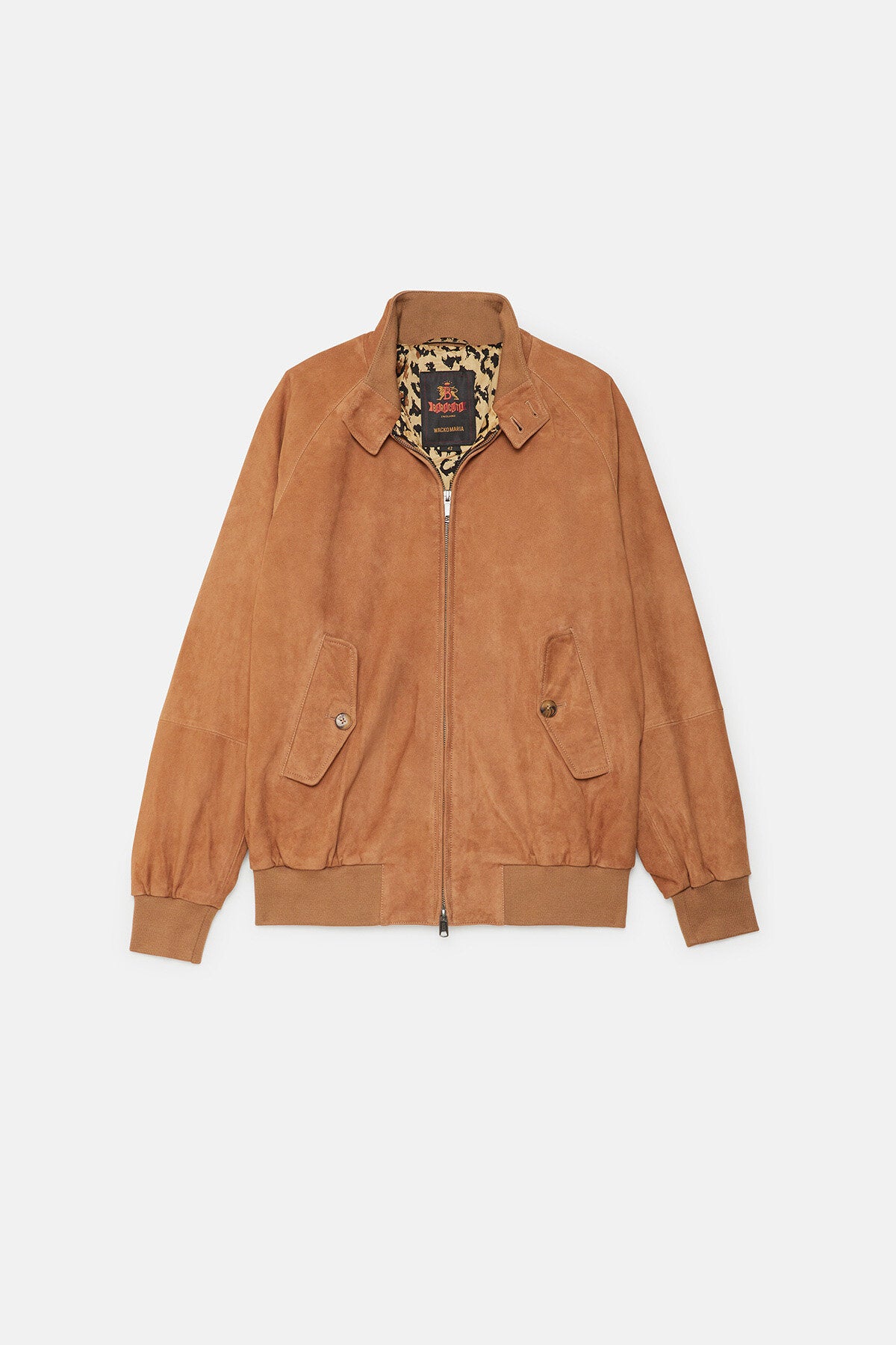 • The G9 Suede x Wacko Maria returns in a striking animalier edition, in three standout colourways: Black, Tobacco, and Chocolate. The outer layer is crafted from premium Baracuta suede, while inside the iconic leopard-print lining brings unmistakable Wacko Maria attitude, finished with a subtle metal chain loop detail. Both the design and fit have been updated, featuring a looser cut for a softer, unisex feel.