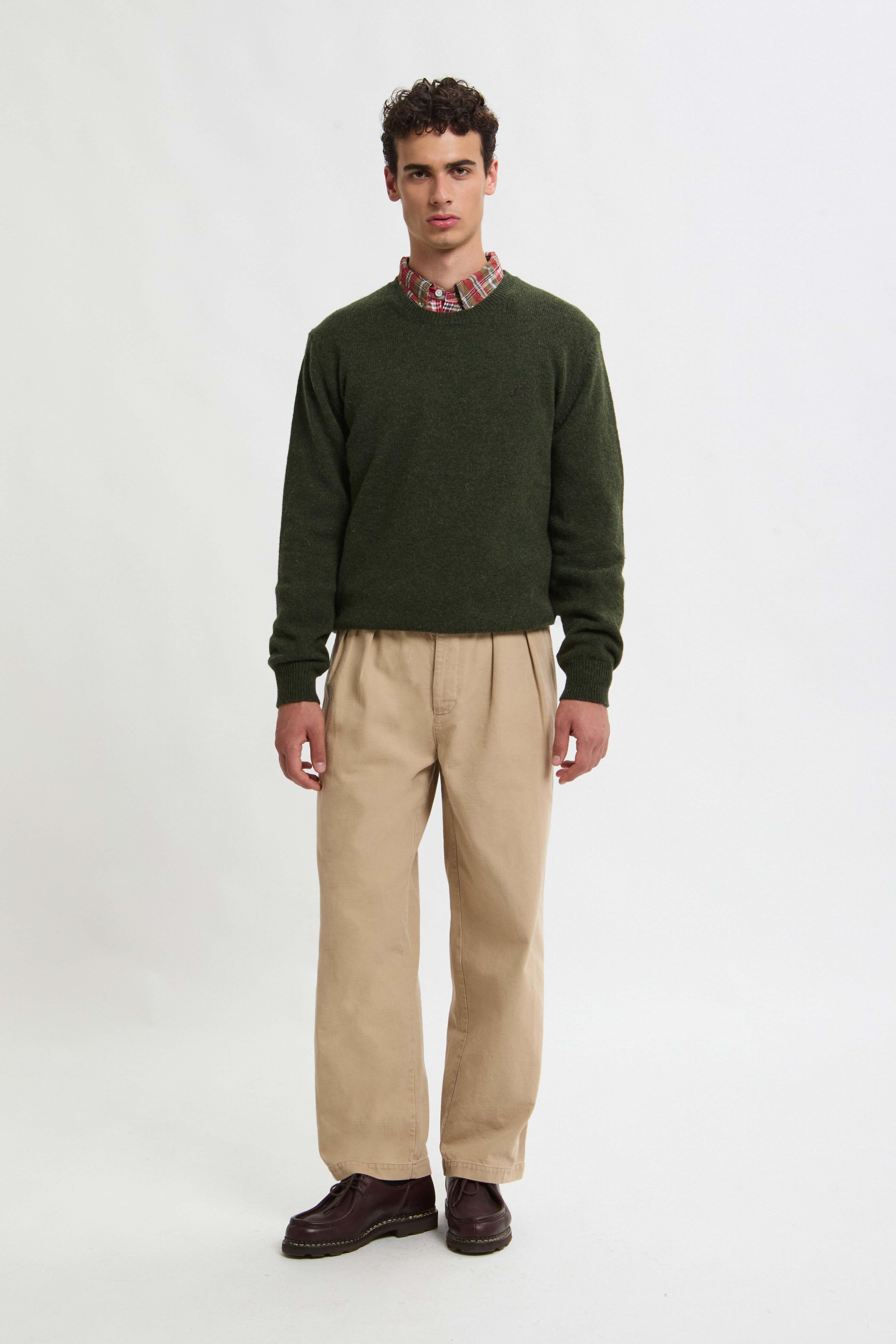 • • Shaggy dog style crew-neck