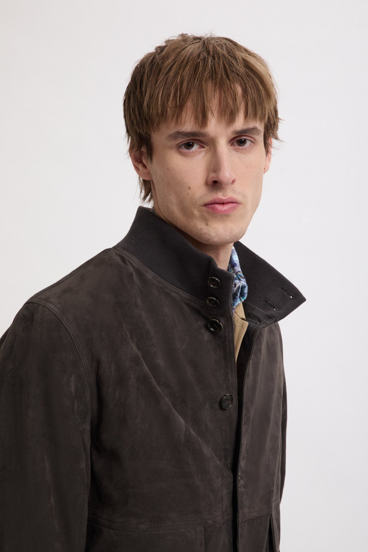 • The Suede Blouson is a jacket built to last and made to wear. Each piece is carefully cut from soft, full-grain suede, chosen for its strength, suppleness, and natural character. The ribbed Dog Ear collar, elasticated cuffs and hem, and set-in sleeves are not just design touches — they are the result of decades of experience in tailoring jackets that move with you while holding their shape. Fully lined in Fraser Tartan, the jacket reflects Baracuta’s heritage, a nod to the brand’s roots and its attention to the details that matter. It’s a jacket for everyday life.