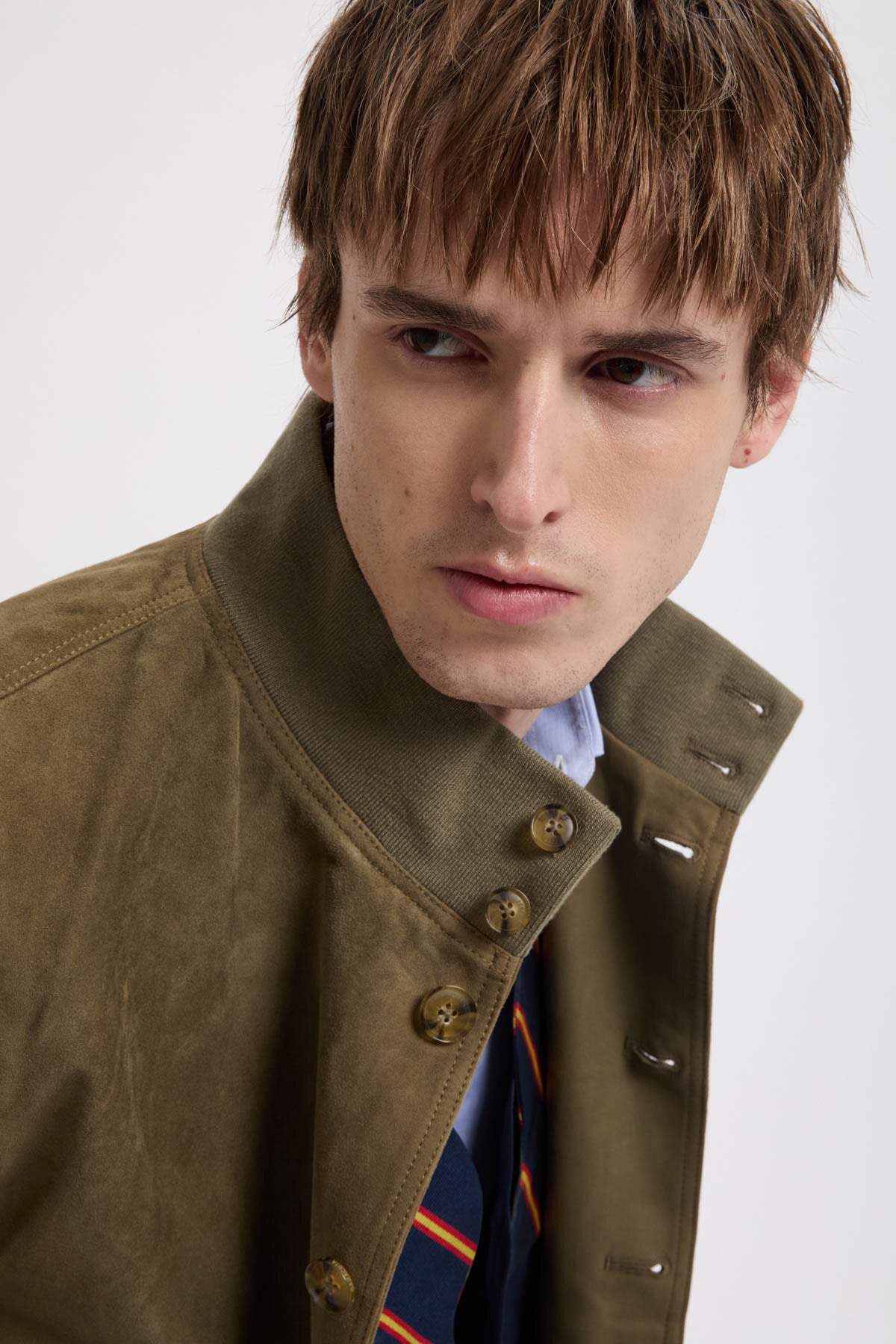 • The Suede Blouson is a jacket built to last and made to wear. Each piece is carefully cut from soft, full-grain suede, chosen for its strength, suppleness, and natural character. The ribbed Dog Ear collar, elasticated cuffs and hem, and set-in sleeves are not just design touches — they are the result of decades of experience in tailoring jackets that move with you while holding their shape. Fully lined in Fraser Tartan, the jacket reflects Baracuta’s heritage, a nod to the brand’s roots and its attention to the details that matter. It’s a jacket for everyday life.