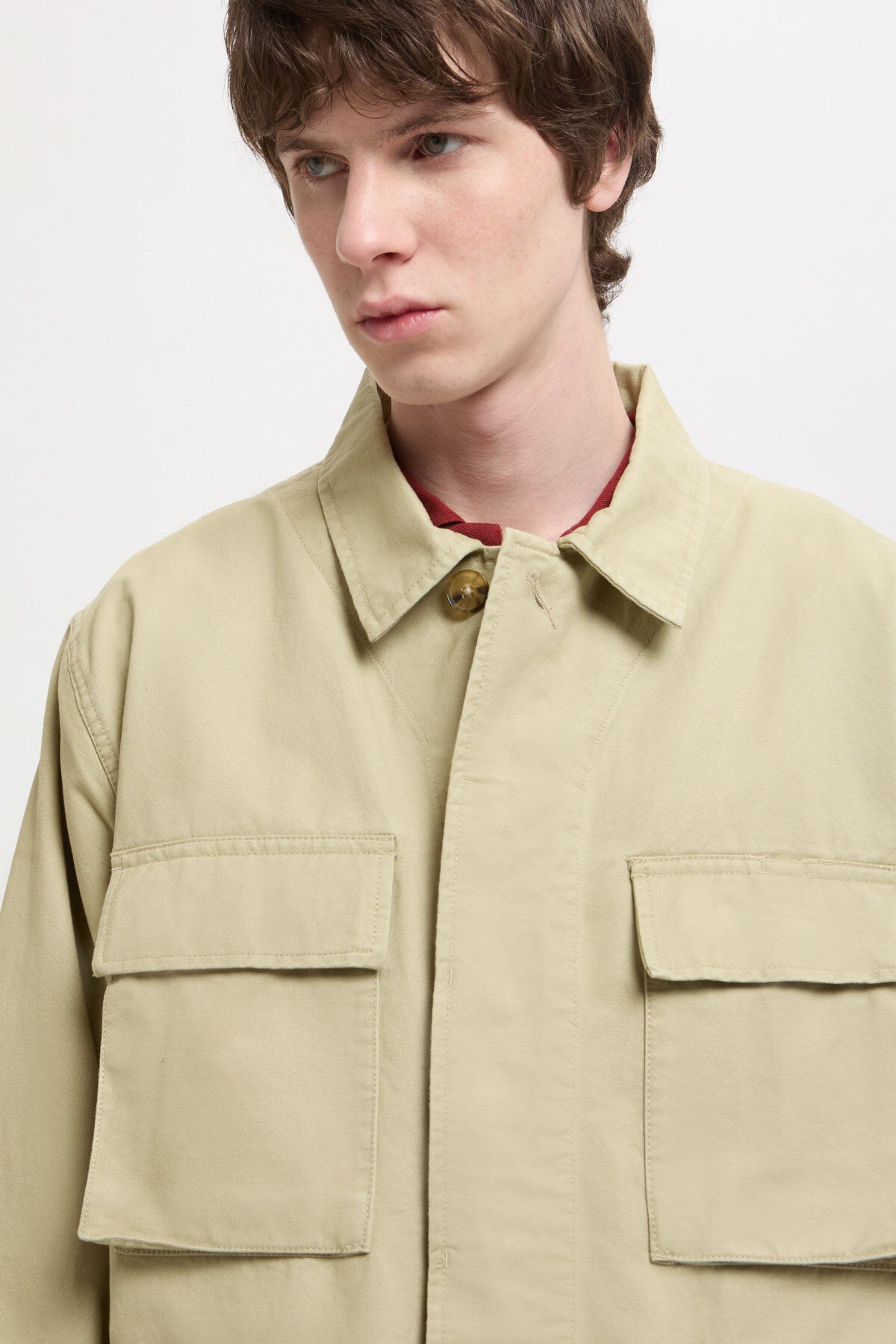 The Twill Field Jacket is crafted from 100% cotton twill, a fabric celebrated for its distinctive diagonal weave that combines strength with softness. This structure not only gives the jacket subtle texture but also allows air to circulate, making it lightweight and breathable and ideal for layering across seasons.